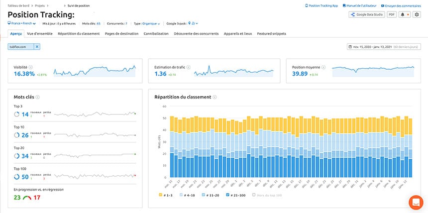 - Suivi des résultats dans Semrush