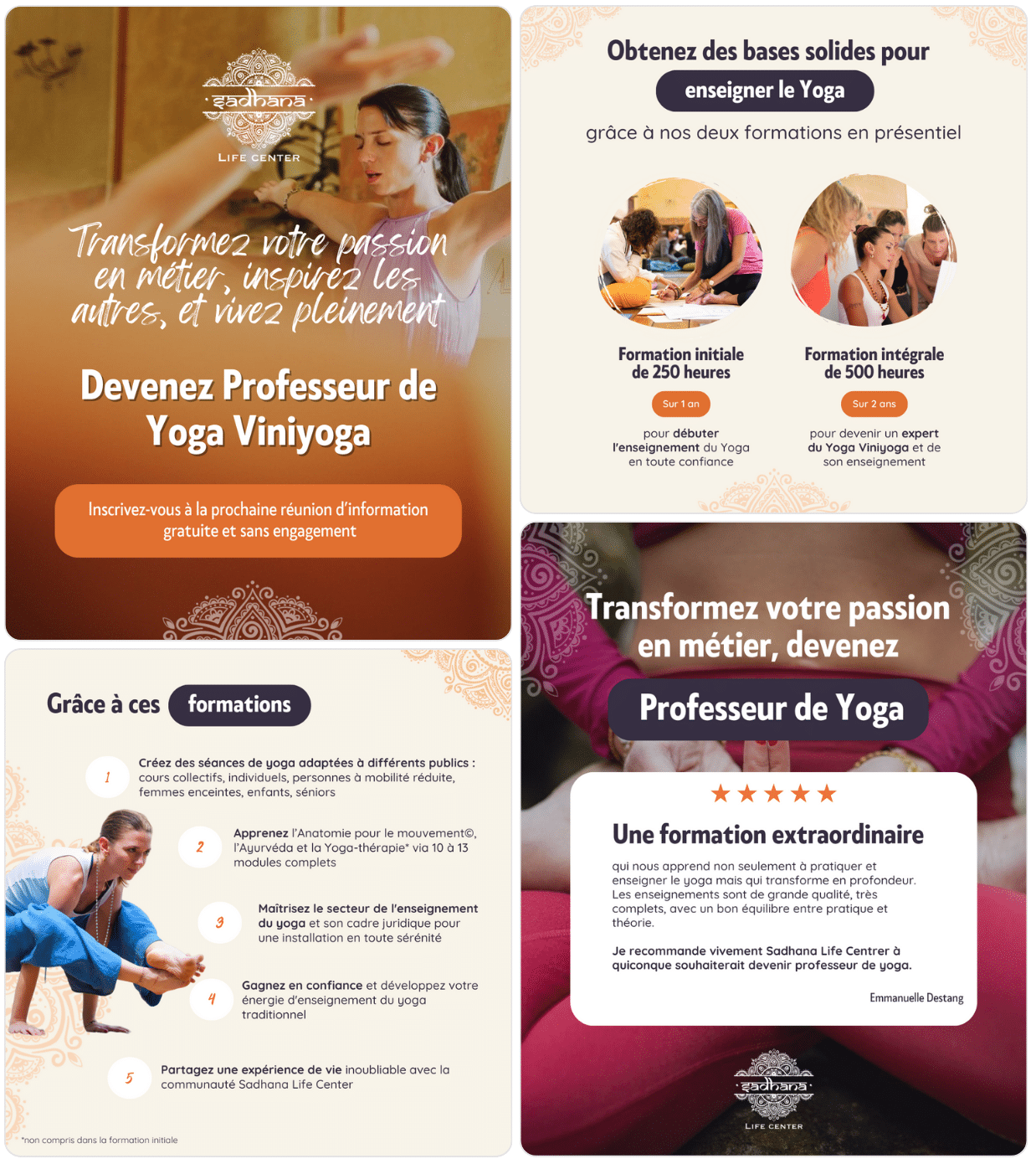 Nous avons été sollicités par Sadhana Life Center, centre de formation certifié Qualiopi pour les professionnels du Yoga, afin de prendre en charge de façon globale son marketing digital.