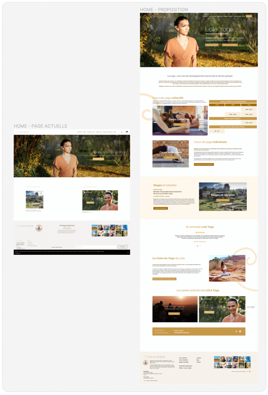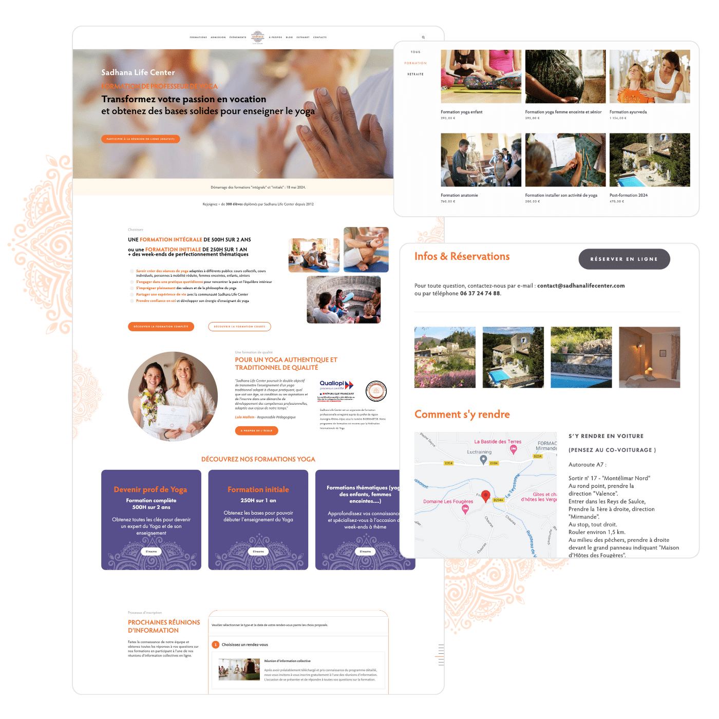 Nous avons procédé à l’optimisation de design des sites afin de proposer des sites web esthétiques, qui offrent un bon compromis entre design, visuel et performance sur pc et mobile. La modernisation des sites Lola Yoga et Sadhana Life center s’est faite en restant fidèle à l’essence de leur charte graphique, tout en étant force de proposition.