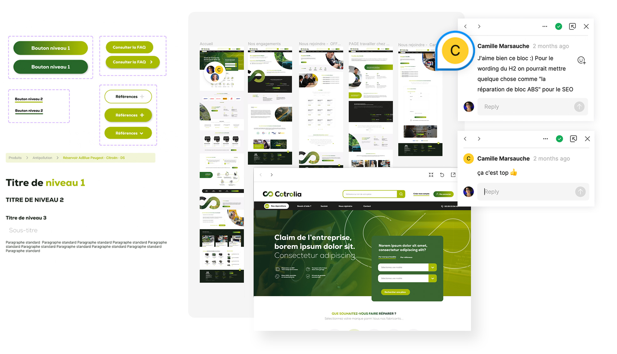 Nous utilisons l’outil collaboratif en ligne Figma, qui permet au client de faire ses retours directement sur les maquettes, centralisant ainsi toutes les informations.